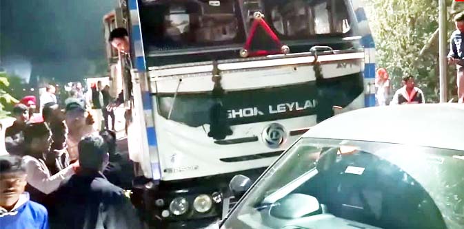 खनन सामग्री ले जा रहे ट्रक का बेकाबू , कई वाहनों को टक्कर, मची भगदड़