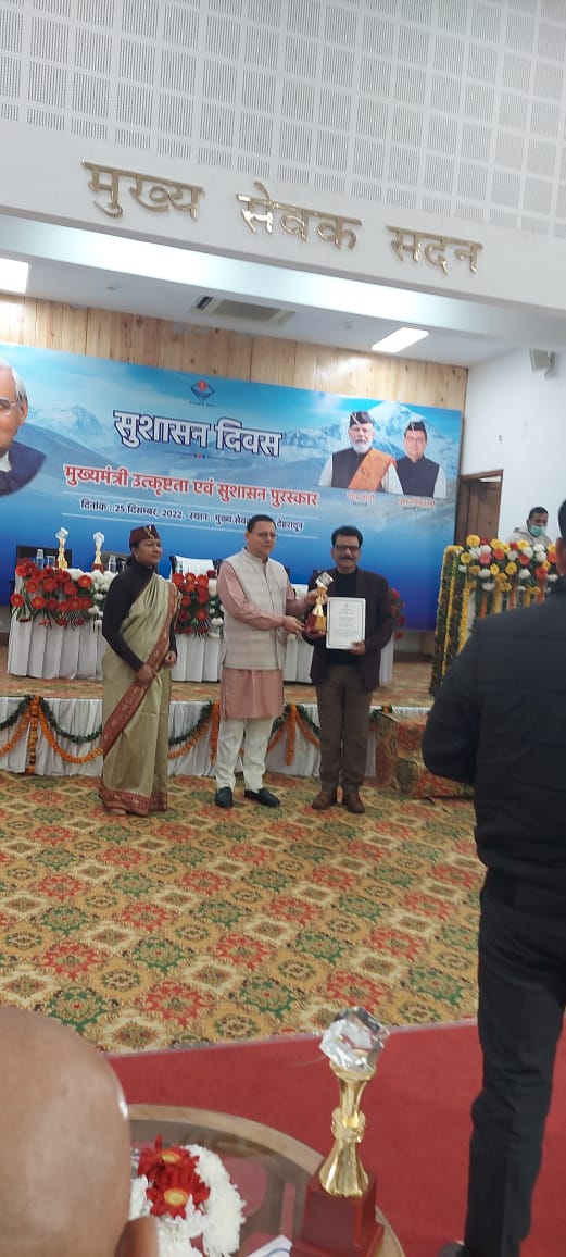 रविवार को उन्हें सुशासन के क्षेत्र में उत्कृष्ट कार्य के लिए मुख्यमंत्री पुष्कर सिंह धामी ने सम्मानित किया है। प्रोफेसर कमल किशोर पांडे को इससे पूर्व भी कई पुरस्कारों से नवाजा गया है।