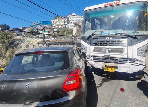 उत्तराखंड परिवहन निगम की बस के ब्रेक हुए फेल, चार वाहनों को मारी टक्कर, बाल-बाल बची लोगों की जान