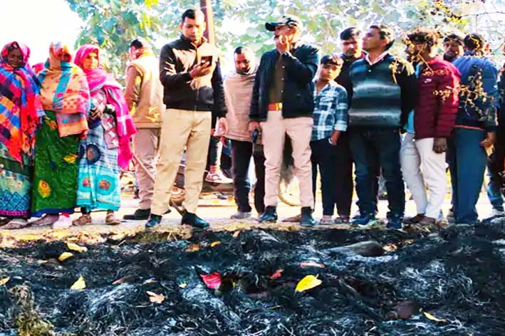 शनिवार सुबह इसी पुआल के ढेर में आग लगी हुई थी और उसी में मुकेश शर्मा का जला हुआ शव पड़ा मिला।