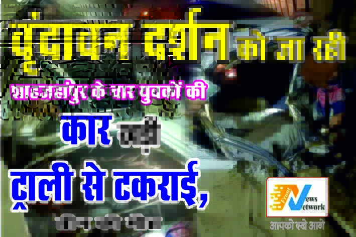 वृंदावन दर्शन को जा रहे शाहजहांपुर के चार युवकों की कार खड़ी ट्रॉली से टकराई, तीन की मौत