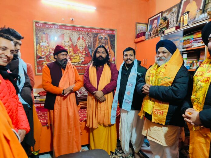 रामलला की नगरी अयोध्या पहुंचे साइकिल यात्री खरबंदा एवम पैदल पदयात्री गाबा, श्री हनुमानगढ़ी के महंत जी ने किया स्वागत