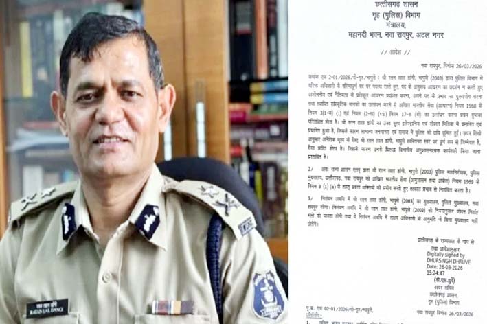 एफएनएन, रायपुर : राज्य सरकार ने पुलिस विभाग के वरिष्ठ अधिकारी आईजी IPS रतन लाल डांगी को निलंबित कर दिया है। यह कार्रवाई उनके आपत्तिजनक फोटो सोशल मीडिया पर वायरल होने के बाद की गई है। इसका आदेश गृह (पुलिस) विभाग, छग शासन ने जारी किया है।