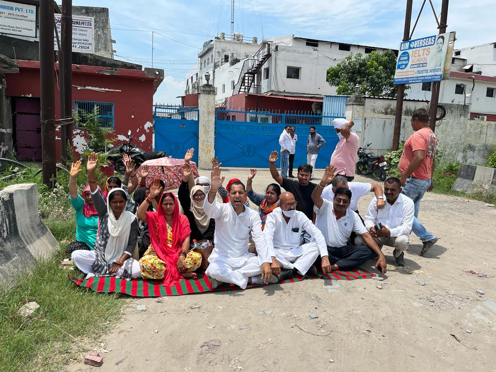मिग फार्मा कम्पनी में 10, 12 वर्षों से काम कर रहीं महिलाओ को कम्पनी से निकाले के विरोध में कम्पनी गेट पर किया प्रदर्शन