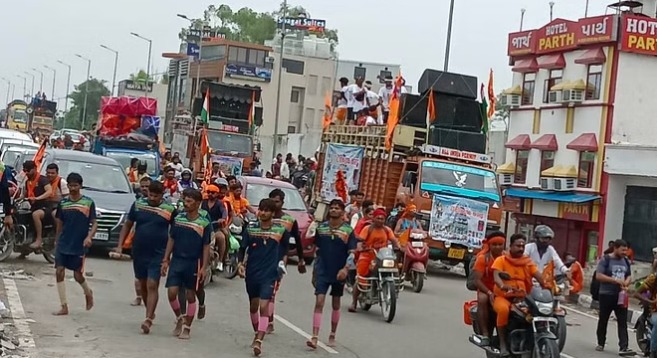 डाक कांवड़ की भागमभाग में बाईपास पर अचानक एक कांवड़िये की बाइक में आग लग गई। जिससे बाईपास पर अफरातफरी मच गई। बाईपास से गुजर रहे कांवड़ियों ने बाइक में लगी आग को बुझाया। जिसके बाद बाईपास से गुजर रहे कांवड़ियों ने राहत की सांस ली।