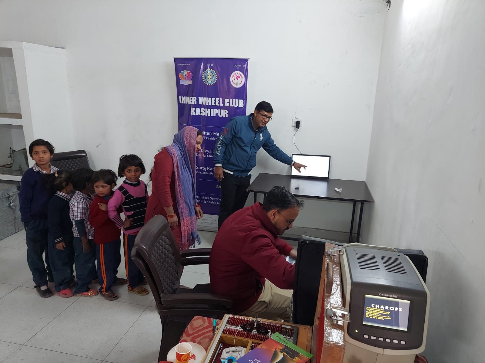 एफएनएन, काशीपुर : इनरव्हील क्लब ऑफ काशीपुर के प्रयास से ग्राम जैतपुर घोसी स्थित राजकीय प्राइमरी विद्यालय में अध्ययनरत विद्यार्थियों के नेत्र परीक्षण हेतु नेत्र चिकित्सा शिविर आयोजित किया गया। मंडल अध्यक्षा श्रीमती दिव्या लहरी के निर्देशानुसार उठाए गए इस सार्थक कदम से 180 बच्चे लाभान्वित हुए। 16 बच्चे जिनकी नजर कमजोर पाई गई, उन्हें क्लब द्वारा नेत्र चिकित्सालय ले जाकर चश्मे प्रदान किए जाएंगे।