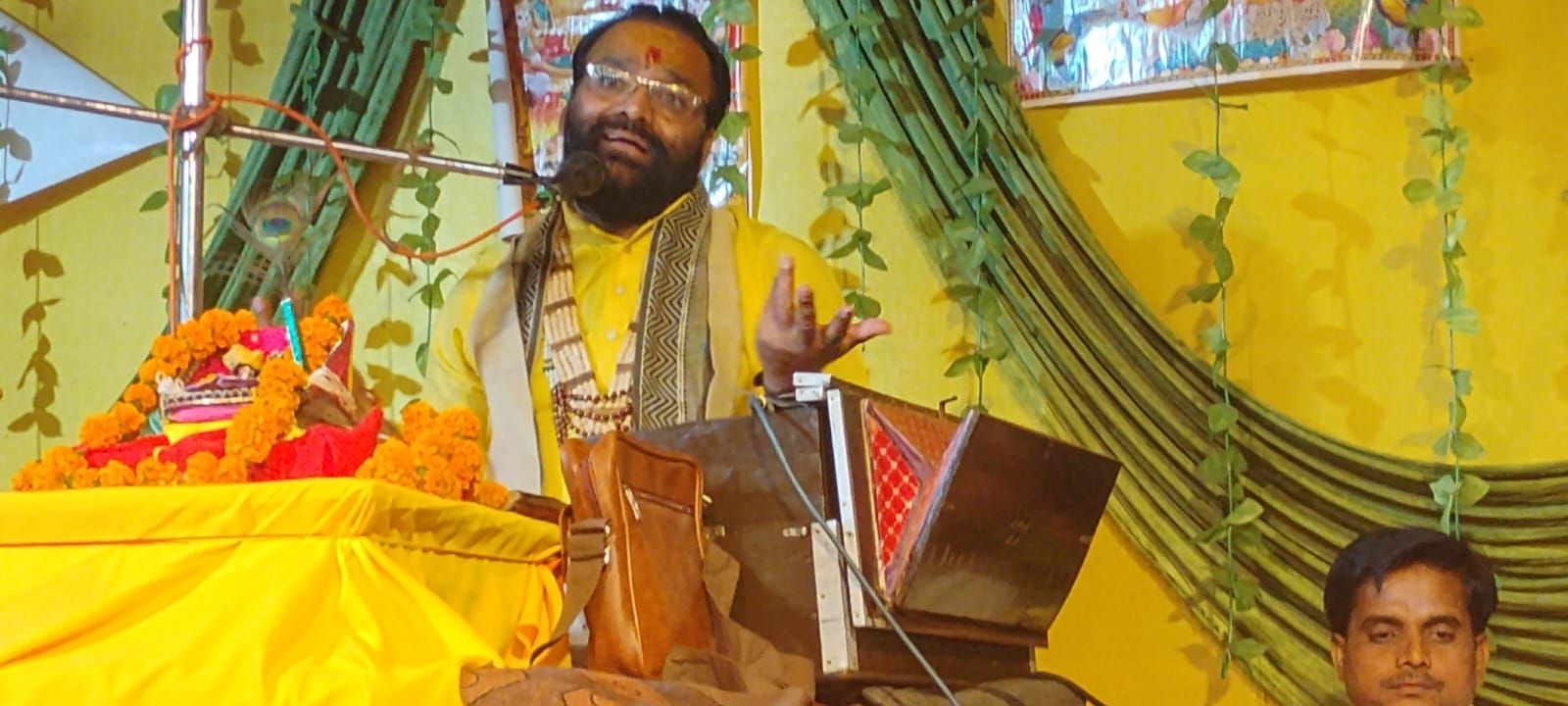 खिरका जगतपुर में नैमिष धाम से आए कथाव्यास की चतुर्थ दिवस सायं सत्र की संगीतमय साप्ताहिक भागवत कथा