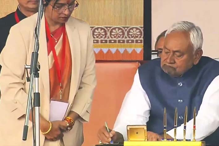 नीतीश कुमार 10वीं बार बने बिहार के मुख्यमंत्री, राज्यपाल आरिफ मोहम्मद खान ने दिलाई शपथ