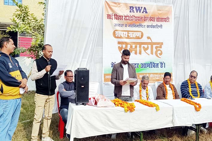एफएनएन, रुद्रपुर : साईं बिहार रेजिडेंशियल वेलफेयर सोसाइटी, कीरतपुर कोलड़ा की बैठक में प्रवीण कुमार को अध्यक्ष, रमेश प्रसाद को उपाध्यक्ष, श्री राम को कोषाध्यक्ष, हर सहाय को सचिव व श्री राजकुमार को वरिष्ठ उपाध्यक्ष चुना गया। इसके साथ ही कार्यकारिणी का सदस्य चंद्र मोहन लखेड़ा, सुरेश चंद जोशी, अश्विनी कुमार, प्रेम सिंह, रामकुमार शर्मा, संतोष मोहंती और जोगिंदर कुमार को बनाया गया। सभी पदाधिकारियों को निर्वाचित अध्यक्ष प्रमोद कुमार ने शपथ दिलाई। इस दौरान साईं बिहार कॉलोनी फेस वन के सभी लोग शामिल हुए।