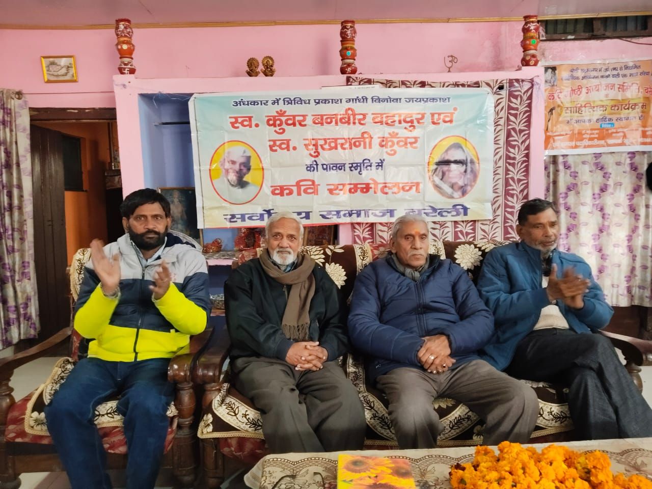फ्रंट न्यूज नेटवर्क ब्यूरो, बरेली । कवि गोष्ठी आयोजन समिति एवं सर्वोदय समाज, बरेली के संयुक्त तत्वावधान में इंदिरा नगर, बरेली में समाजसेवी गांधी मोहन सक्सेना के संयोजन में उनके पिता स्वर्गीय कुॅंवर बनवीर बहादुर एवं माता स्वर्गीया सुखरानी कुॅंवर की पावन स्मृति में सरस काव्य गोष्ठी का आयोजन किया गया।