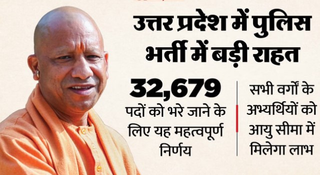 एफएनएन, लखनऊ : मुख्यमंत्री योगी आदित्यनाथ के निर्देश पर यूपी पुलिस और जेल विभाग भर्ती में बड़ा फैसला लिया गया। 32,679 पदों की सीधी भर्ती में सभी वर्गों को आयु सीमा में बड़ी छूट दी गई है।