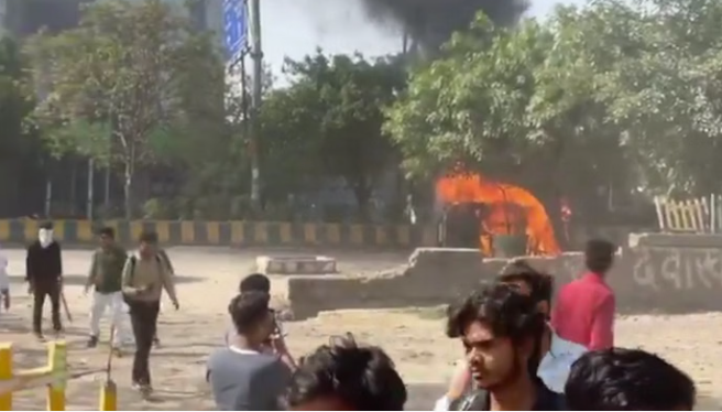 नोएडा में वेतन वृद्धि की मांग को लेकर प्रदर्शन हिंसक, कई वाहन फूंके